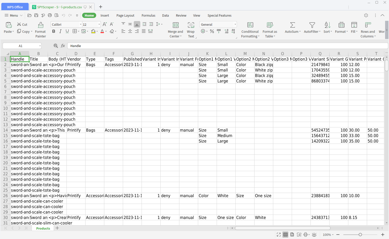 Export all product data to CSV format, compatible with Shopify import format, making it simple to use the data in your own store.
